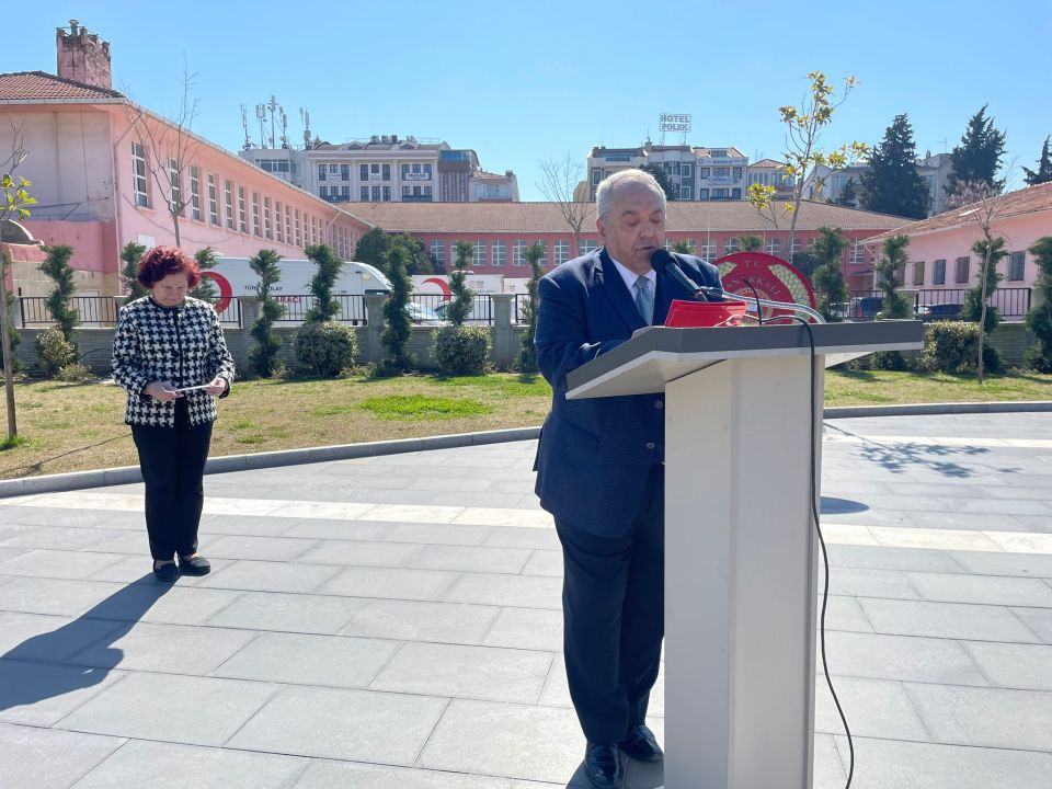 Atatürk Anıtına çelenk konulması, saygı duruşu ve İstiklâl Marşının okunmasının ardından günün anlam ve önemini belirten konuşmayı Türkiye Emekli Subaylar Derneği Çanakkale Şubesi Başkanı Eminettin Ergin yaptı.