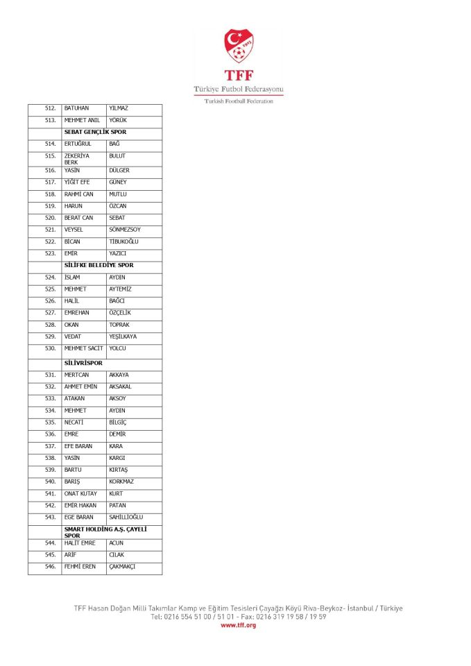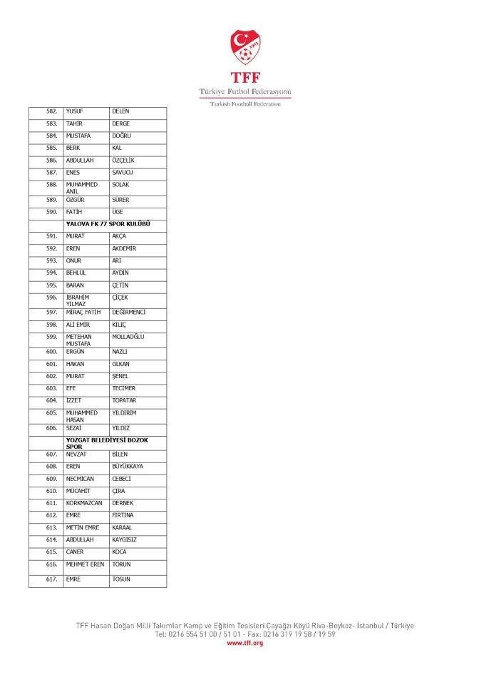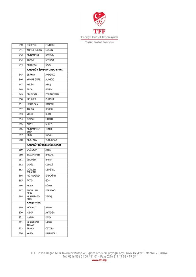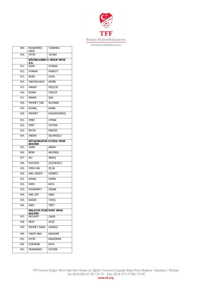 TFF Yönetim Kurulu'nun 10.11.2025 tarihli kararı ile TFF 2. Lig ve TFF 3. Lig müsabaka fikstürlerinin 2 hafta kaydırılmasına karar verilmiştir. TFF Süper Lig ve TFF 1. Lig müsabakaları daha önce ilan edildiği şekilde oynanmaya devam edecektir. Sadece tek bir kere bahis hareketi olduğu görülen 47 futbolcunun disiplin sevk işlemleri, telafisi mümkün olmayan zararlara sebebiyet vermemek adına ilgili kurumlardan gelecek cevabi evraklar neticesinde elde edilecek yeni delil ve bilgiler çerçevesinde değerlendirilecektir. Türkiye Futbol Federasyonu tarafından resmi kurumlarla yapılan yazışmalar devam etmekte olup bu gelecek cevaplara göre soruşturma genişletilerek devam edecektir. Futbol Disiplin Talimatı'nın 57. maddesi uyarınca PFDK'ya sevk edilen 1024 futbolcu aşağıda yer almaktadır" denildi.
