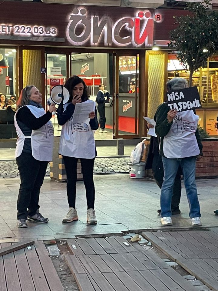Bu ülkede kadınlar öldürülürken, duruşmalarda katiller dinleniyor, öldürmesinde haklı bir sebep aranıyor, bir sürü davada takipsizlik kararı çıkıyor, iyi hal indirimleri uygulanıyor. Yüzlerce kadın bu ülkede devletten koruma talep ediyor, katilinden korunmak için uzaklaştırma talep ediyor. Ama onca kadın, koruma talebine rağmen elektronik kelepçeye rağmen kolluk görevini yapmadığı için öldürülmeye devam ediyor. Buradan en güçlü şekilde haykırıyoruz: Görevini yapmayanları korumak şiddettir! Faillerle birlikte düzeninizle, iktidarınızla suçlusunuz.