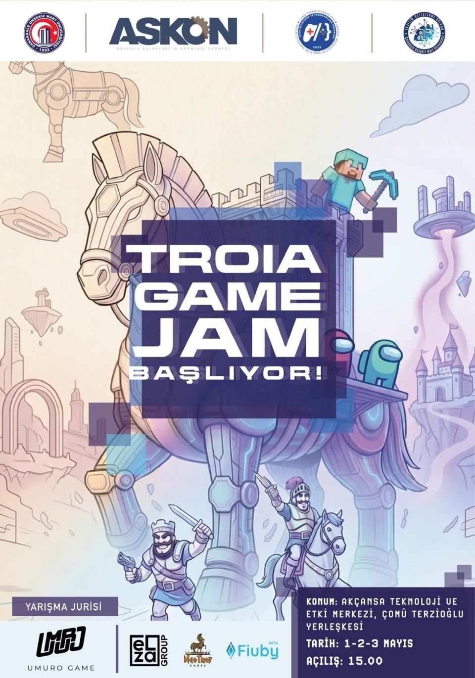 Yükseköğretim Kurulu’nun (YÖK) istihdam odaklı eğitim vizyonu doğrultusunda hayata geçirilen Troia Game Jam, 1 Mayıs’ta ÇOMÜ Akçansa Etki Merkezi’nde başlayacak. Etkinlik kapsamında seçici kurul tarafından belirlenen 40 öğrenci, multidisipliner takımlar oluşturarak kendilerine verilen tema çerçevesinde özgün dijital oyunlar geliştirecek.