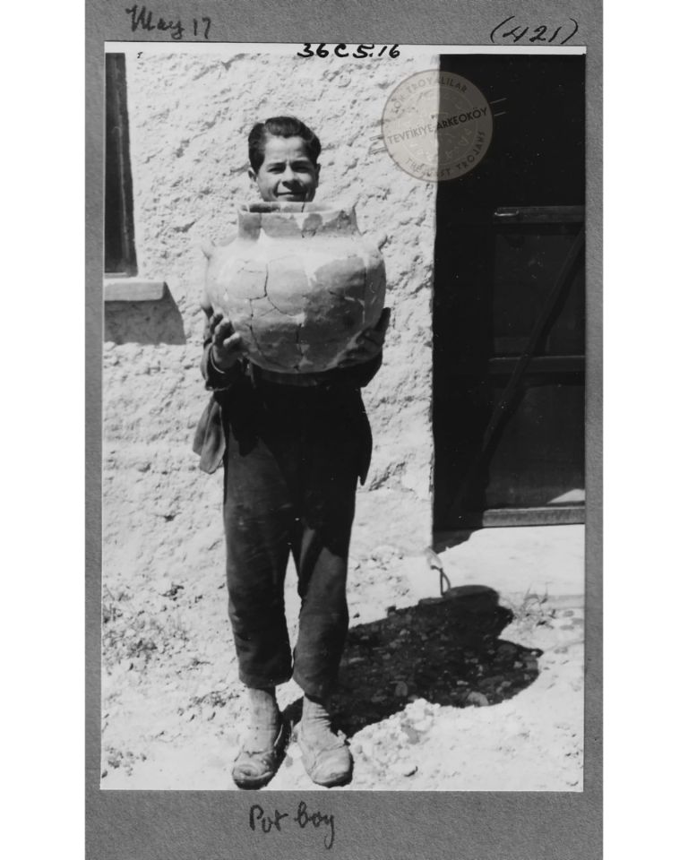 Paylaşımda, 1932–1938 yılları arasında C. W. Blegen döneminde Troya’da çalışan çömlekçi çocuklara ait arşiv fotoğraflarına da yer verildi. Bu çocukların, o dönem Tevfikiye ve çevre köylerden kazılara katıldıkları bilgisi paylaşıldı.