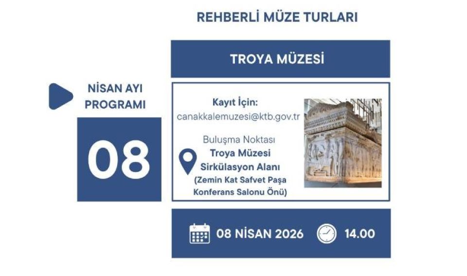 Rotada yer alan Troya Müzesi de 8 Nisan'da misafirlerini ağırlayacak. Saat 14.00'te başlayacak rehberli müze turu için canakkalemuzesi@ktb.gov.tr adresine elektronik posta adresi üzerinden başvuruda bulunulabilir.