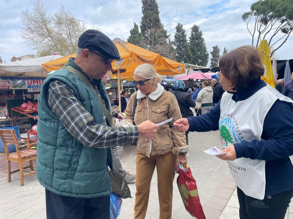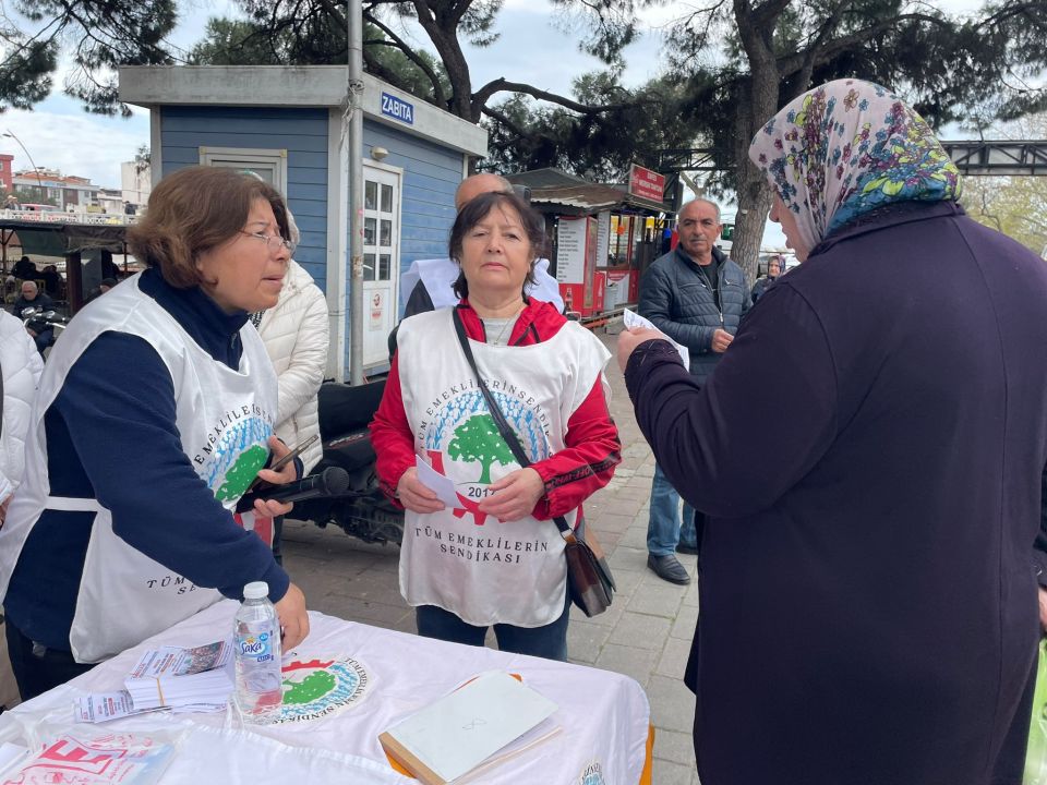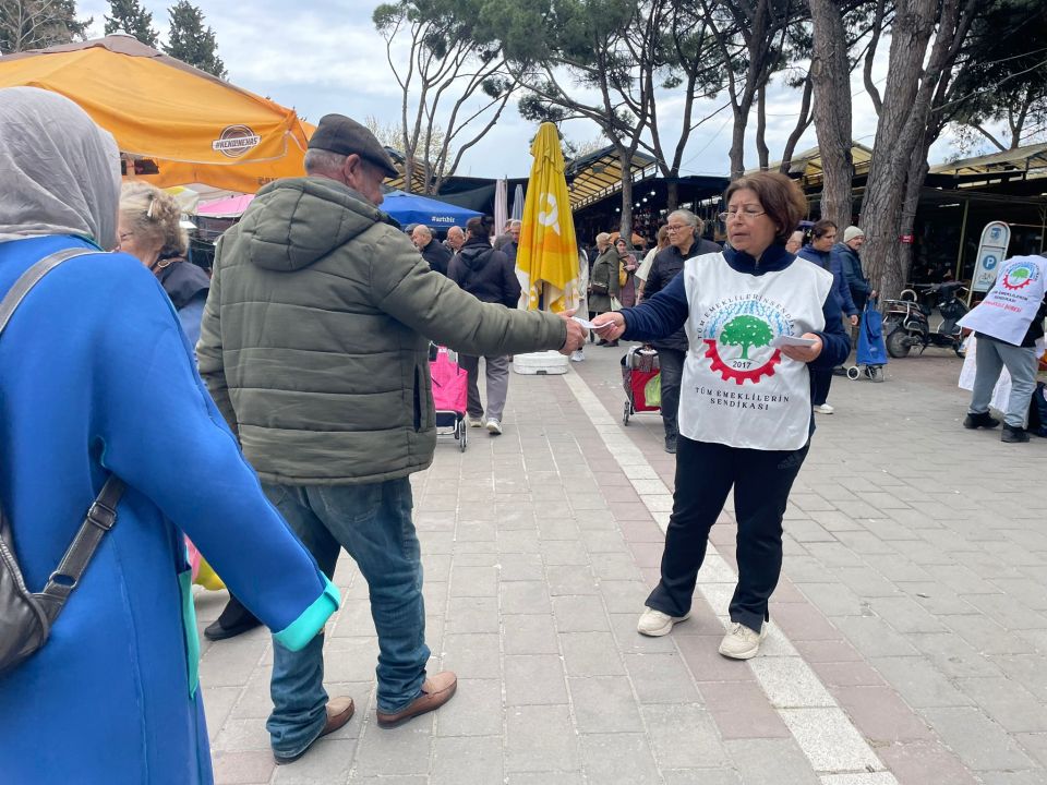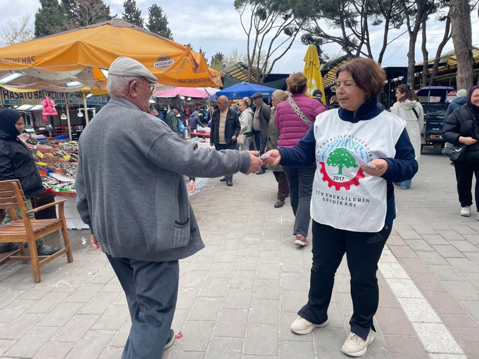 Bugün öğle saatlerinde Cuma Pazarının ana girişinde stand kuran Tüm Emeklilerin Sendikası Çanakkale Şubesi üyeleri, 19 Nisan’da İzmir Dikili Atatürk Meydanında düzenlenecek olan “Sefalet Zulmüne Son” mitingine kent halkını davet etti.