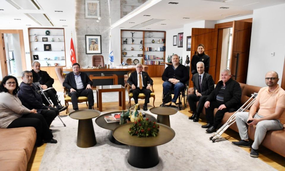 Çanakkale Belediye Başkanı Muharrem Erkek, Türkiye Sakatlar Derneği Genel Başkanı Şükrü Boyraz ve beraberindeki heyeti ağırladı.