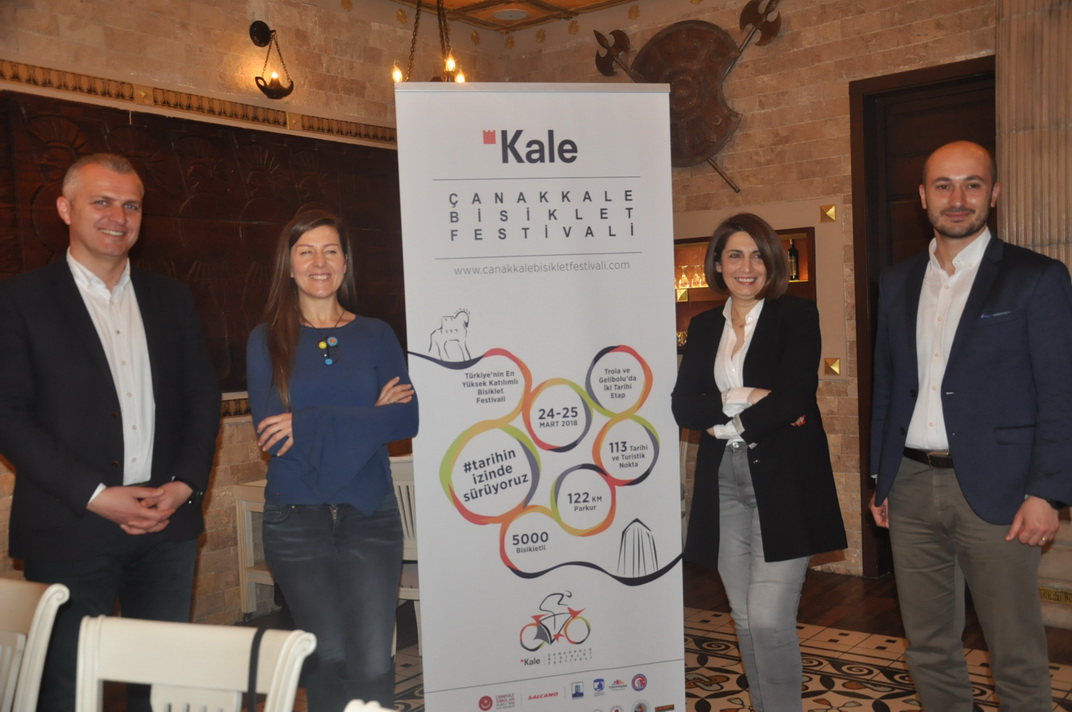 Kale Grubu ve Global Travel Planner (GTP) işbirliğinde 23-24-25 Mart tarihleri arasında yapılacak olan Kale Çanakkale Bisiklet Festivali, yaklaşık olarak 5 bin katılımcısı ile bisiklet severler ile buluşacak. Dün, yapılan lansman toplantısında bu tür projelerle Çanakkale’nin tarihsel kültürlerinin açığa çıkacağı belirtildi. Truva Oteli’nde yapılan basın toplantısına, Kale Grubu Kurumsal İletişim Direktörü Rana Birden Çorbacıoğlu, GTP Turizm A.Ş Kurucu Ortakları Armağan Aydeğer ve Ahmet Çelik katıldı. Toplantıda konuşan Kale Grubu Kurumsal İletişim Direktörü Rana Birden Çorbacıoğlu, Kale Grubunun bu tür çalışmaların içinde bulunmasına büyük gayret gösterildiğini açıkladı. Kale Grubunun daha önceki çalışmalarında bahsederken, sürdürülebilir projelerde de yer almanın mutluluğunu duyduklarını belirten Çorbacıoğlu; “Kale Grubu olarak Çanakkale’de düzenlenen tüm güzel çalışmaların içerisinde bulunmaya gayret ediyoruz. Bu yıl, Troia Kültür ve Turizm yılı. Dolayısıyla da Çanakkale’de doğmuş ve dünyanın dört bir yanında yatırımlar yapmış ve Türkiye’nin önde gelen sanayi kuruluşlarından birisi olarak, yerele sahip çıkmayı, küresel nitelikteki işlere destek olmayı her zaman önemsiyoruz. Bu nedenle de hem yerele sahip çıkarak hem de küresel nitelikteki ‘bisiklet’ gibi önemli bir sporu 23-24-25 Mart tarihlerinde Truva’dan Gelibolu’ya kadar ‘Tarihin izini sürüyoruz’ sloganı ile gerçekleştirerek bisiklet festivalinde hep birlikte olmaktan büyük mutluluk ve memnuniyet duyacağız. Çanakkale’nin yaşanılabilir bir kent olması ve Çanakkale’ye doğru bir şekilde yatırım yapabilmek adına ‘Aklım fikrim Çanakkale’ projesini gerçekleştirmiştik” ifadelerini kullandı.