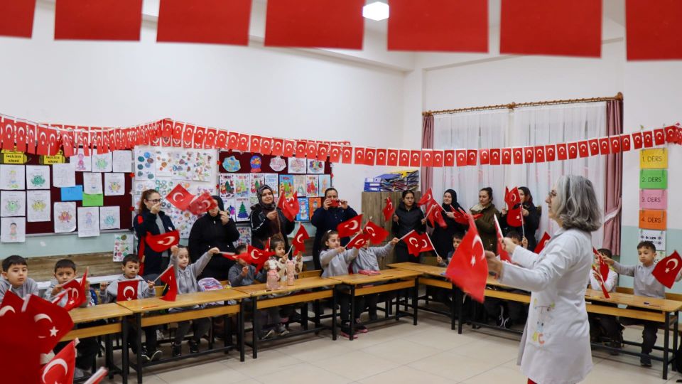Öğrencilerle samimi bir sohbet gerçekleştiren Hayta, bayrağın yalnızca bir sembol değil; birlik, beraberlik ve ortak değerlerin ifadesi olduğunu vurguladı. Eğitim-öğretim sürecinde bu değerlerin çocuklara kazandırılmasının, güçlü bir toplum inşa etmenin temel taşlarından biri olduğu ifade edildi.