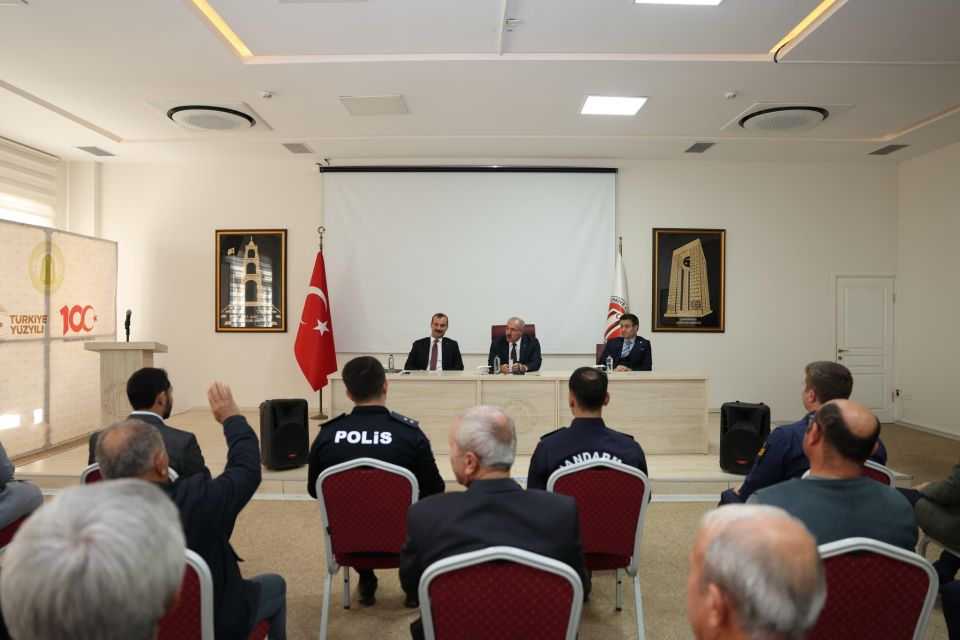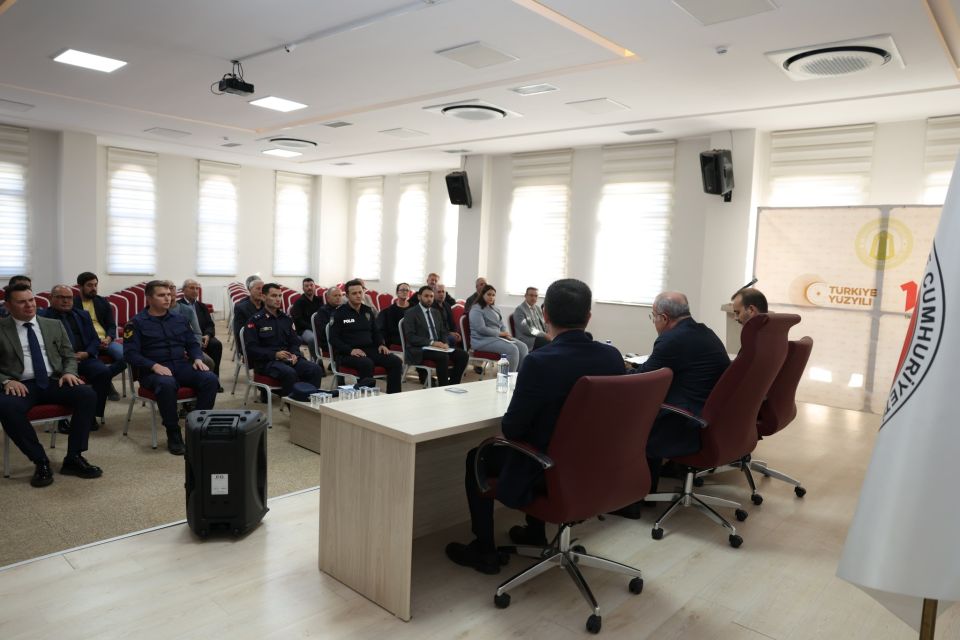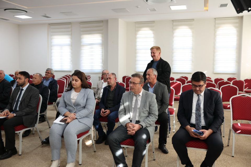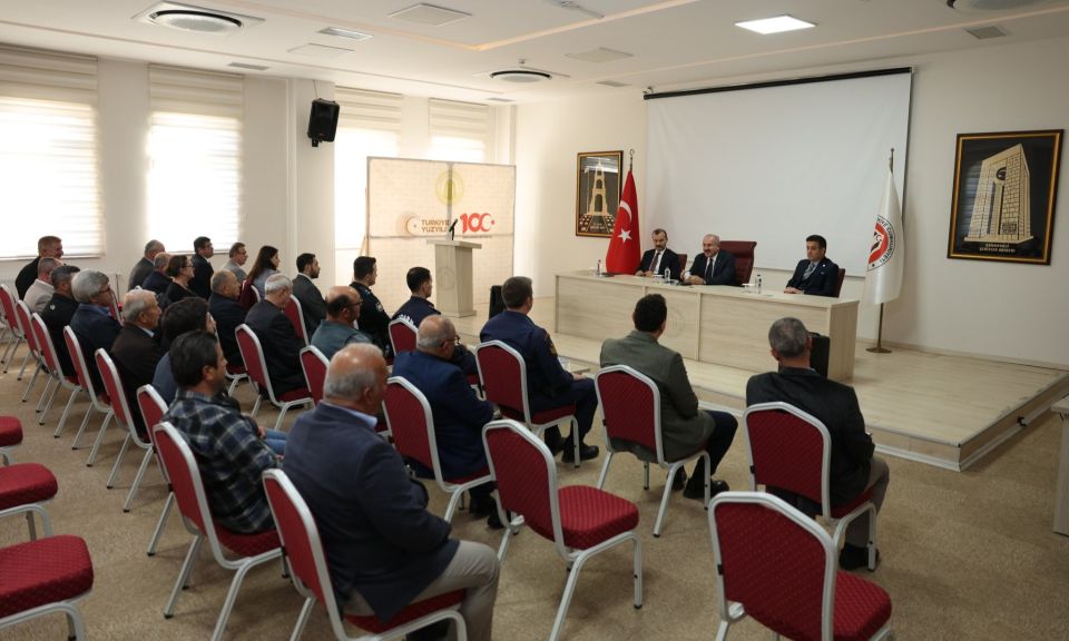 köy muhtarlarıyla Eceabat Kaymakamlığı Toplantı Salonunda bir