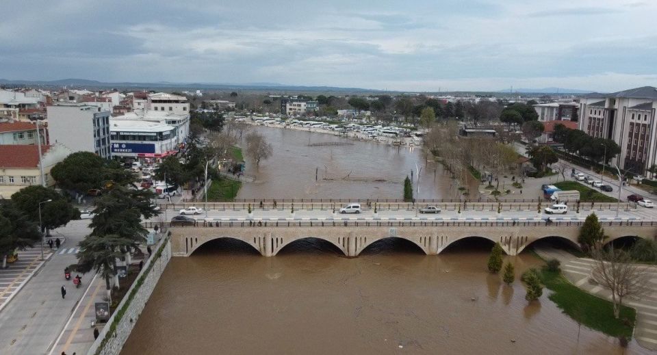 Biga'da etkili olan yağmur nedeniyle ilçe merkezinden geçen Kocabaş Çayı, debisi yükselince taştı. Çay yatağındaki otopark kullanıma kapatıldı. Otopark olarak kullanılan alanlar sular altında kaldı. Yağmur nedeniyle taşan Kocabaş Çayı dron ile görüntülendi.