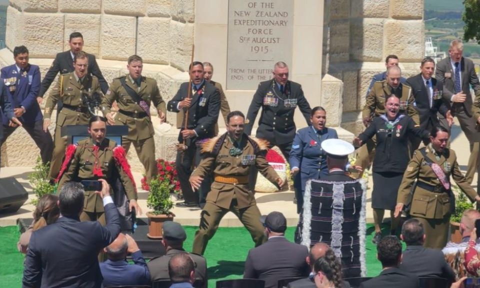 Protokol üyeleri, anıta Yeni Zelanda Savunma Kuvvetleri Maori Kültürel Topluluğu'nun karşılama gösteriyle geldi. Törende ilahiler okunup, dua edildi. Yeni Zelanda Anıtı'na çelenkler sunularak, Yeni Zelanda ve Türkiye ulusal marşları okundu. Konuşmaların ardından savaşta ölen Yeni Zelanda askerleri için ülke bayrağı törenle yarıya indirilerek, saygı duruşunda bulunuldu. Tören, Yeni Zelandalı askerlerin meşhur haka dansı ile sona erdi.