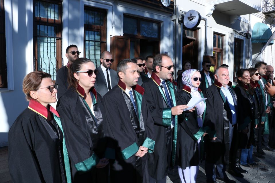 “Bugün burada, baromuza bağlı olarak Yenice ilçesinde görev yapan meslektaşımız Av. Seda Şahin’e yönelik gerçekleştirilen sözlü saldırıyı kınamak ve meslektaşımıza destek olmak için toplandık.