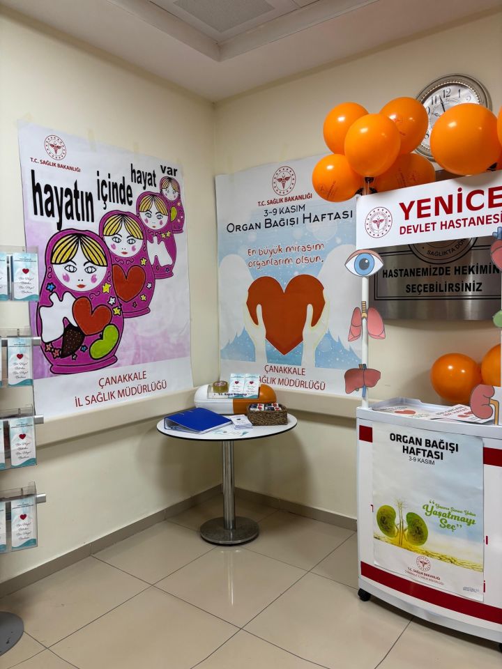 Çanakkale Yenice Devlet Hastanesi, 3–9 Kasım Organ Bağışı Haftası kapsamında anlamlı bir etkinliğe ev sahipliği yaptı. Hastane yönetimi tarafından kurulan bilgilendirme standında, vatandaşlara organ bağışının insan hayatındaki önemi ve bağış süreci hakkında detaylı bilgiler verildi.