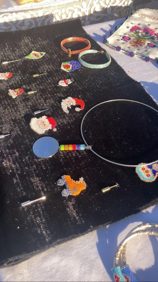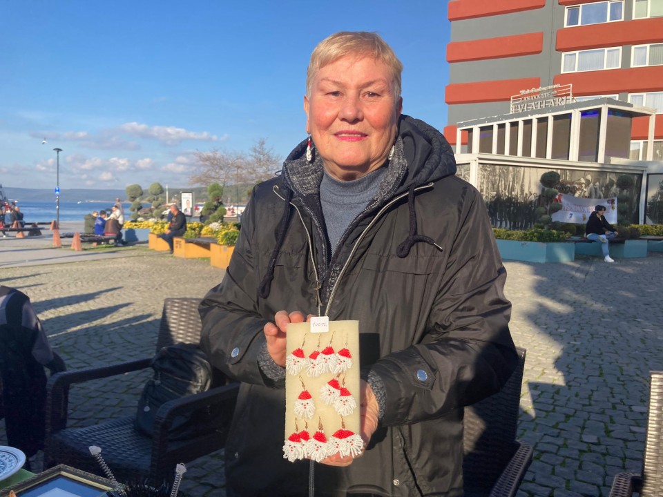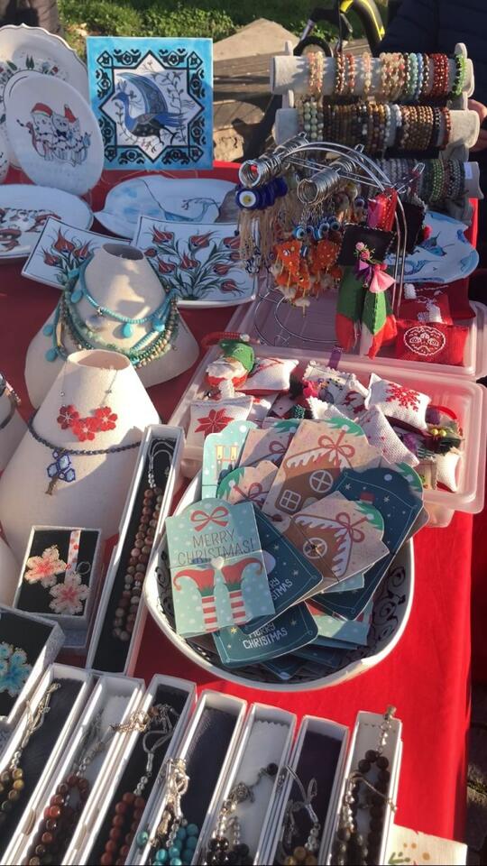 Rengarenk el işi ürünlerin sahibi Zerrin Saraçoğlu, “Şu an İskele Meydanı’nda bir yılbaşı panayırı düzenliyoruz. Daha önce de defalarca Halk Bahçesi’nde düzenlemiştik. Sanat ve zanaat dallarını içeren arkadaşlarla beraberiz. Satışlarımız fena değil.” dedi.