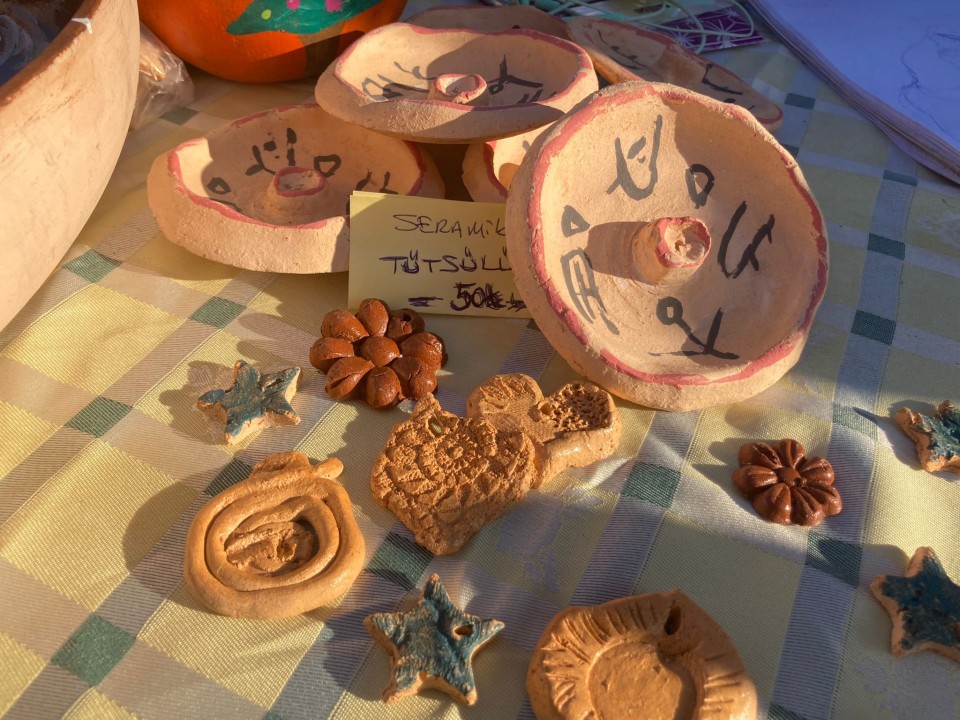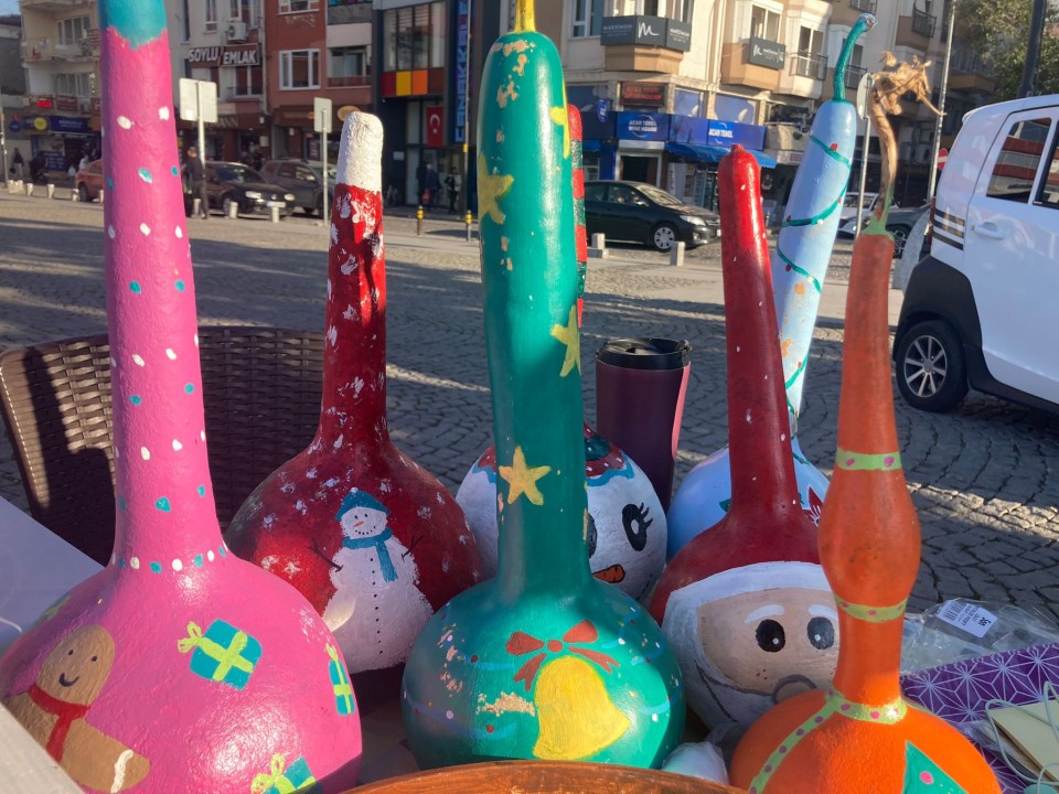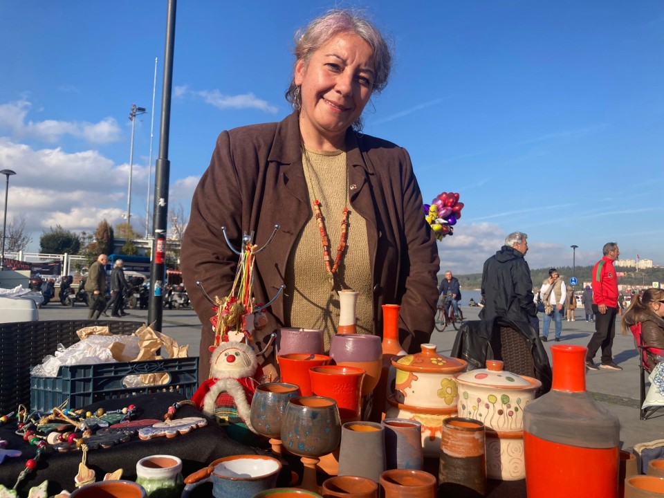 Yılbaşı temalı seramiklerini sergileyen Bahar Kor, “Ürünlerimizin hepsi el yapımı çalışmalar. Tezgahlara bir ilgi var ama satış var mı derseniz, çok yoğun değil. Normal diyebiliriz, son gün belki daha fazla satış olabilir.” ifadelerini kullandı.