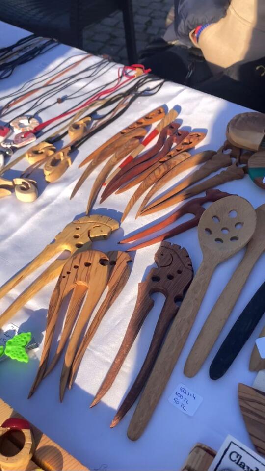 Bugün de devam eden pazarda takılardan su kabaklarına, işlenmiş tahtalardan kilden yapılmış tütsülüklere, cam bardaklara ve kurabiyelere kadar birbirinden çeşitli ürünler tezgahları süsledi.